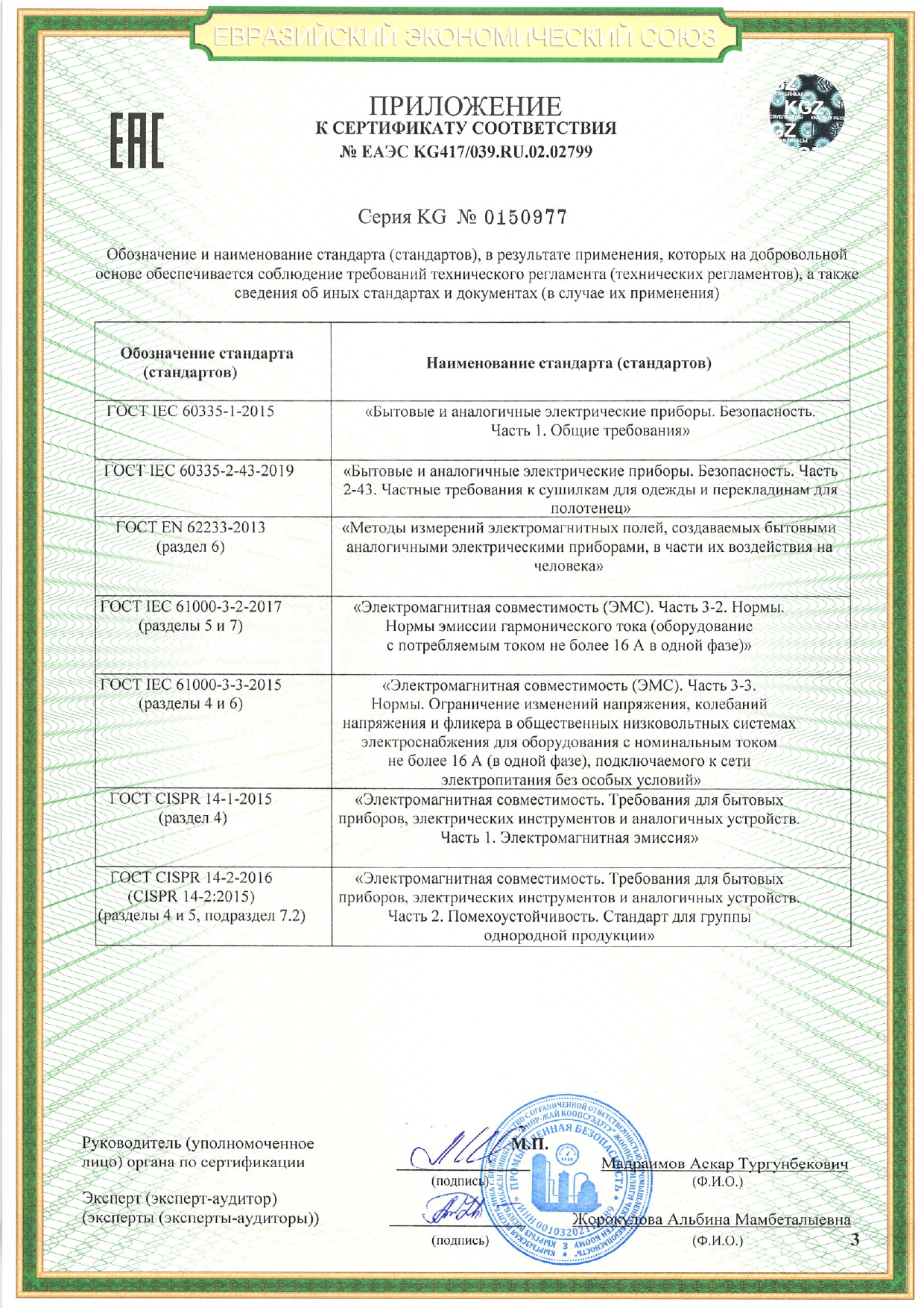 Сертификат соответствия: № ЕАЭС КС417/039.1Ш.02.02799